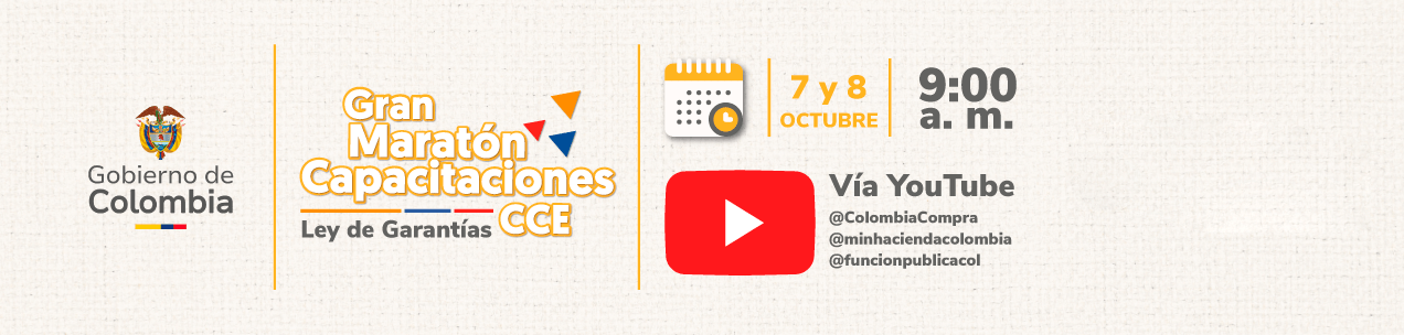 Desde la Agencia Nacional de Contratación Pública – Colombia Compra Eficiente invitamos a las y los líderes de los procesos de contratación de las entidades a participar en la Gran Maratón de Capacitaciones en Ley de Garantías, con la participación del Ministerio de Hacienda y de Función Pública. La proximidad de la vigencia de la Ley de Garantías exige anticipación y planeación para evitar reprocesos, retrasos y riesgos de cumplimiento. Este espacio permitirá alinear criterios, resolver dudas críticas y orientar acciones inmediatas en SECOP II.